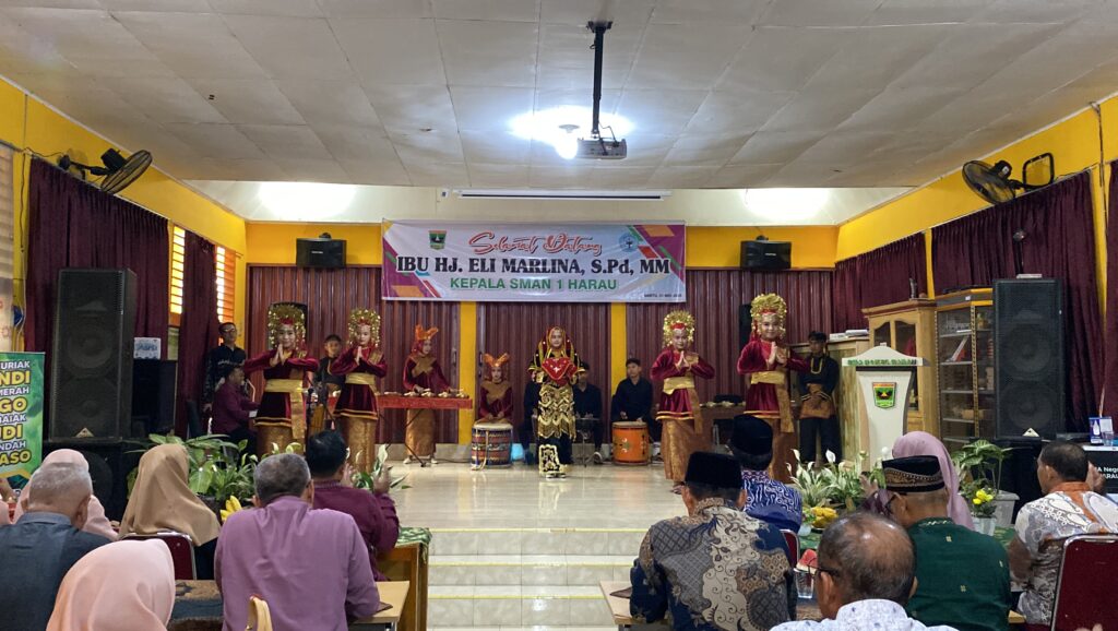 Kepala Cabang Dinas Pendidikan Wilayah IV Provinsi Sumatera Barat, Bapak Syafruddin, S. Pd, M.M. , Pengawas Cabang Dinas Pendidikan Wilayah IV Provinsi Sumatera Barat, Bapak Asricun M.M.Pd. , beserta rombongan dari SMAN 2 Harau disambut dengan Tari Pasambahan.
